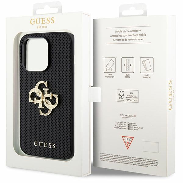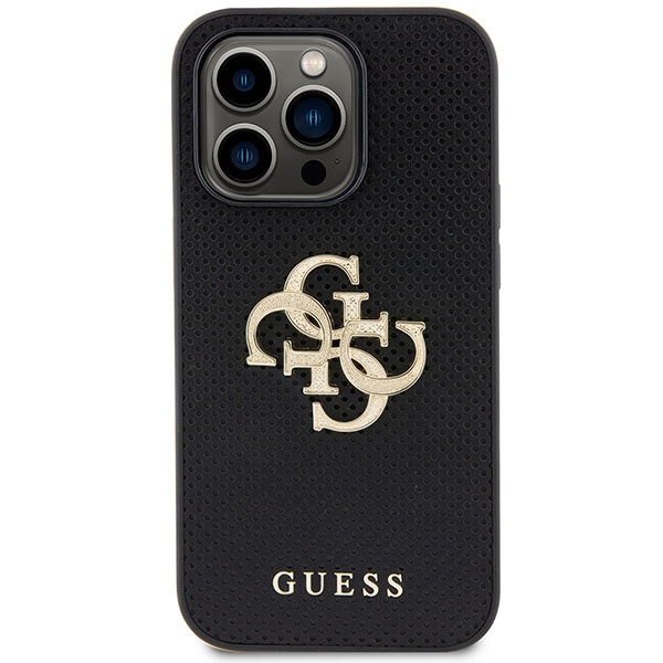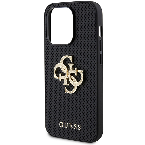 Guess GUHCP15LPSP4LGK Black Hardcase Leather Perforated 4G Glitter Logo iPhone 15 Pro Tok