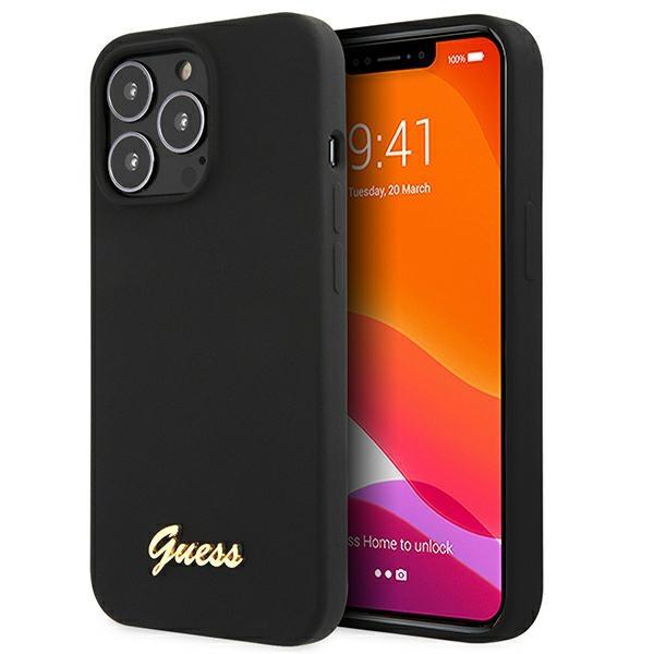 Guess GUHMP13LLSLMGBK Black Silicone Script Gold Logo iPhone 13 Pro Tok