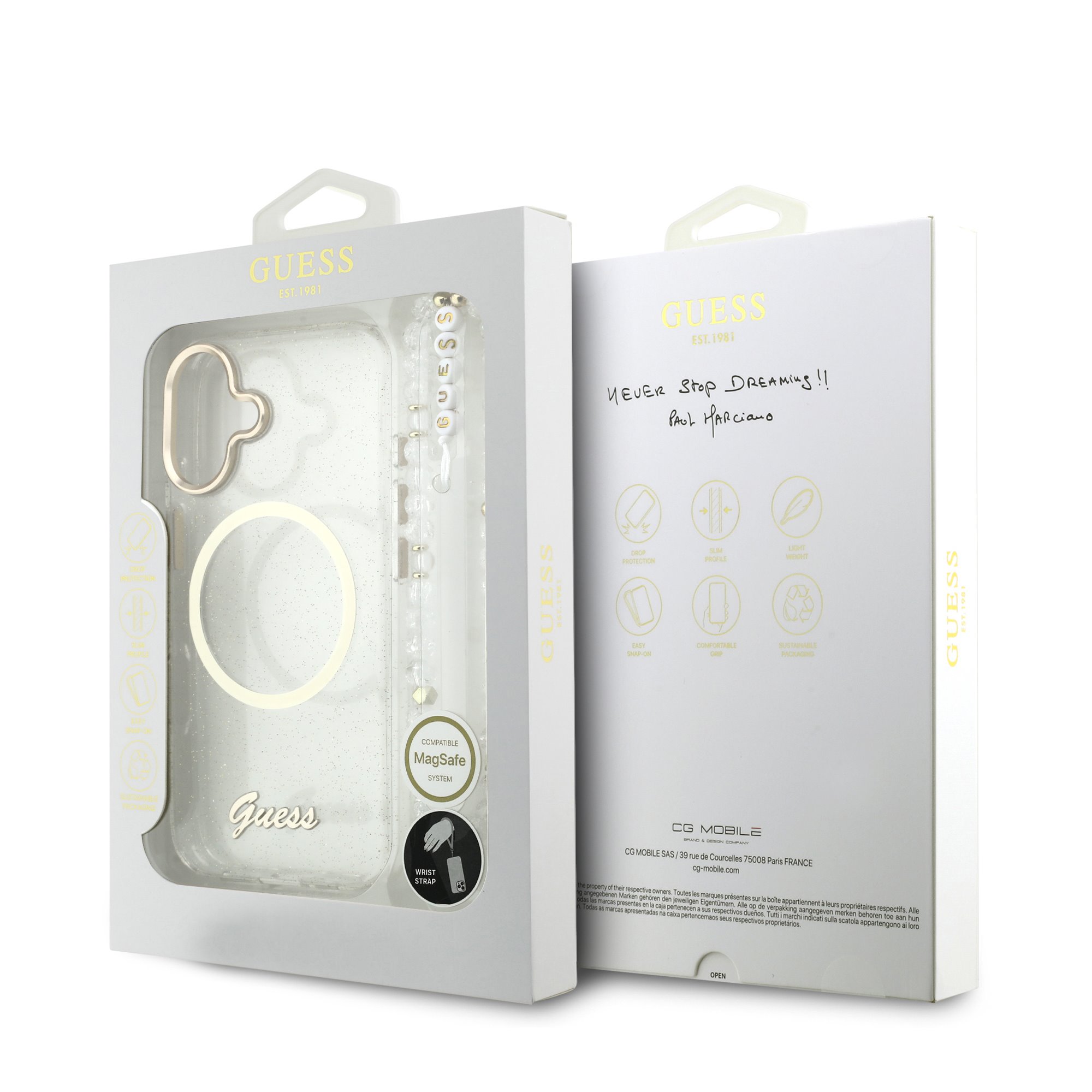 Guess IML Glitter Script Strap MagSafe Transparent iPhone 17 Tok