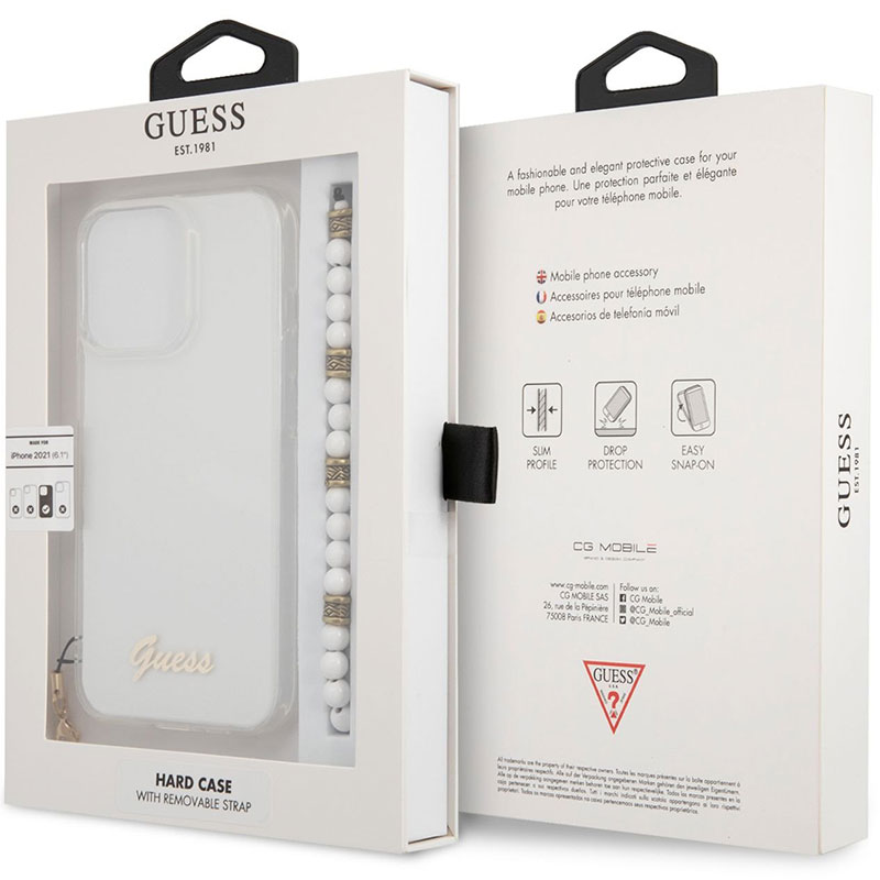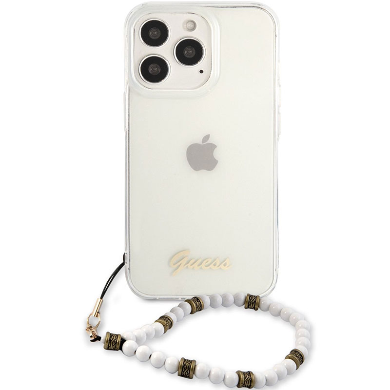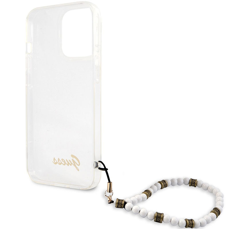 Guess PC Script and Fehér Pearls Transparent iPhone 13 Pro Tok
