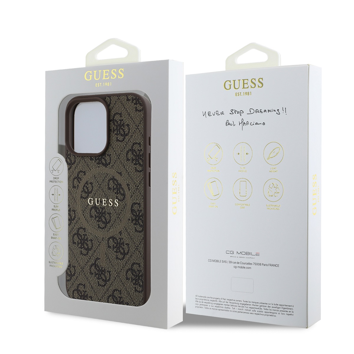 A Guess elegáns „4G” nyomtatás és a fém logó nem csak finom, de luxus megjelenést is biztosít.