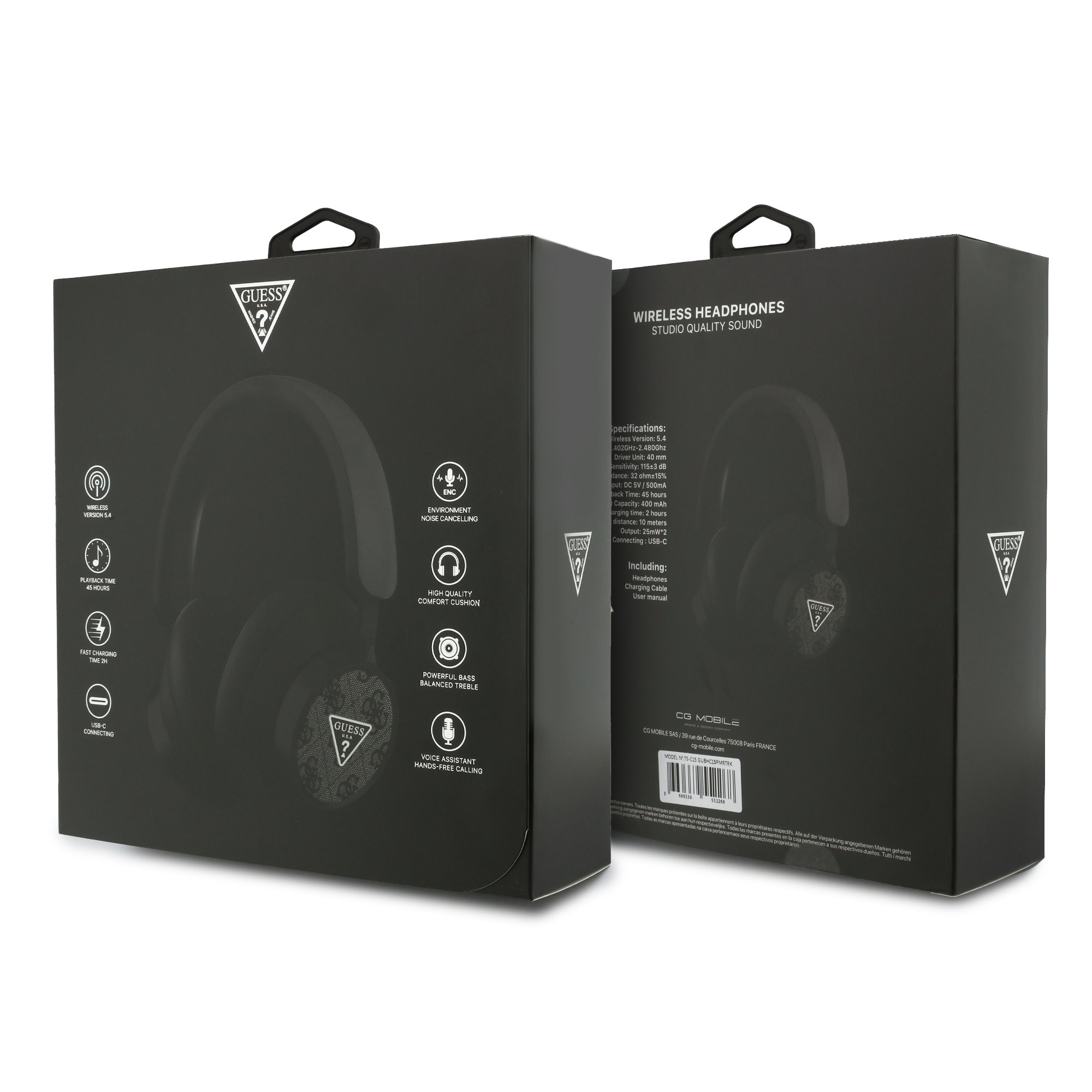 Guess PU Leather 4G Triangle Logo ENC Wireless Headphones Black