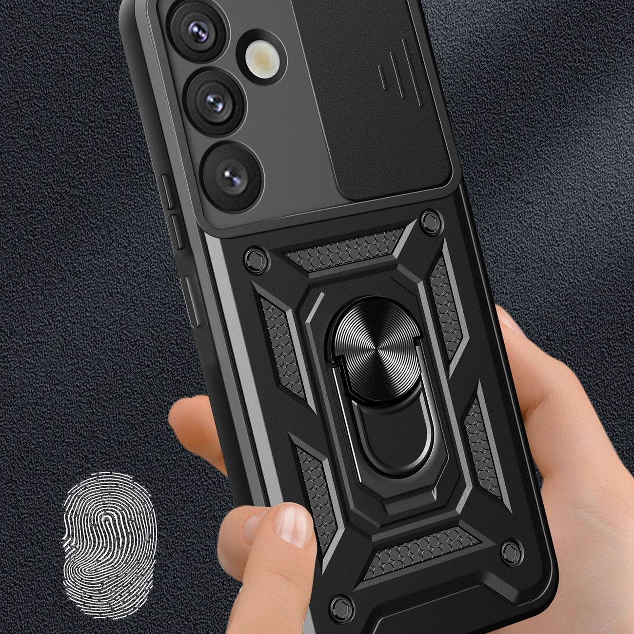 Hybrid Armor Camshield With Camera Cover And Metal Ring Black Samsung Galaxy S25 Plus Tok