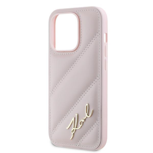 Karl Lagerfeld KLHCP14LPQDSMGP Pink Hardcase Diagonal Quilted Script iPhone 14 Pro Tok
