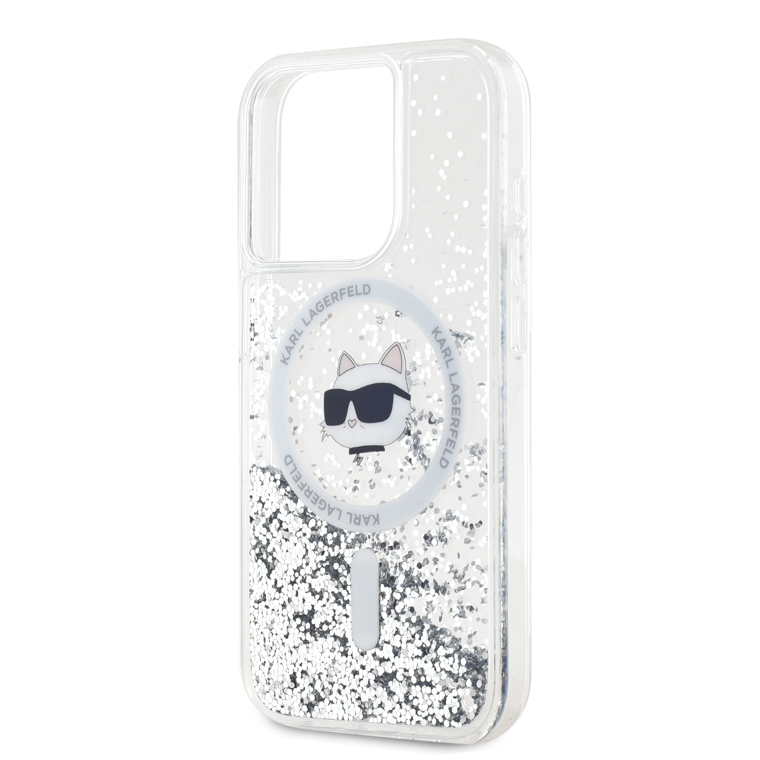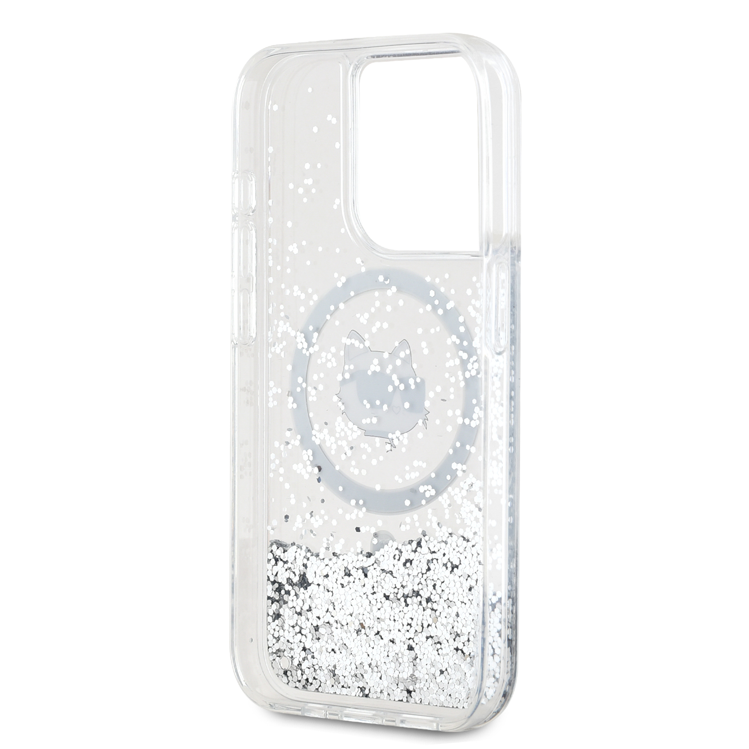 Karl Lagerfeld Liquid Glitter Choupette Head MagSafe Transparent iPhone 15 Pro Tok
