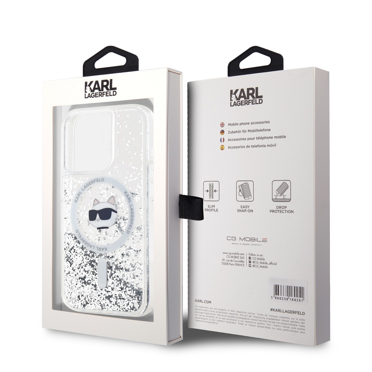 Karl Lagerfeld Liquid Glitter Choupette Head MagSafe Transparent Kryt iPhone 15 Pro letisztult dizájnt és biztos védelmet kínál a iPhone 15 Pro számára. Pontos illeszkedése karcsú profilt tart, miközben óvja a készüléket az ütésektől és karcoktól.