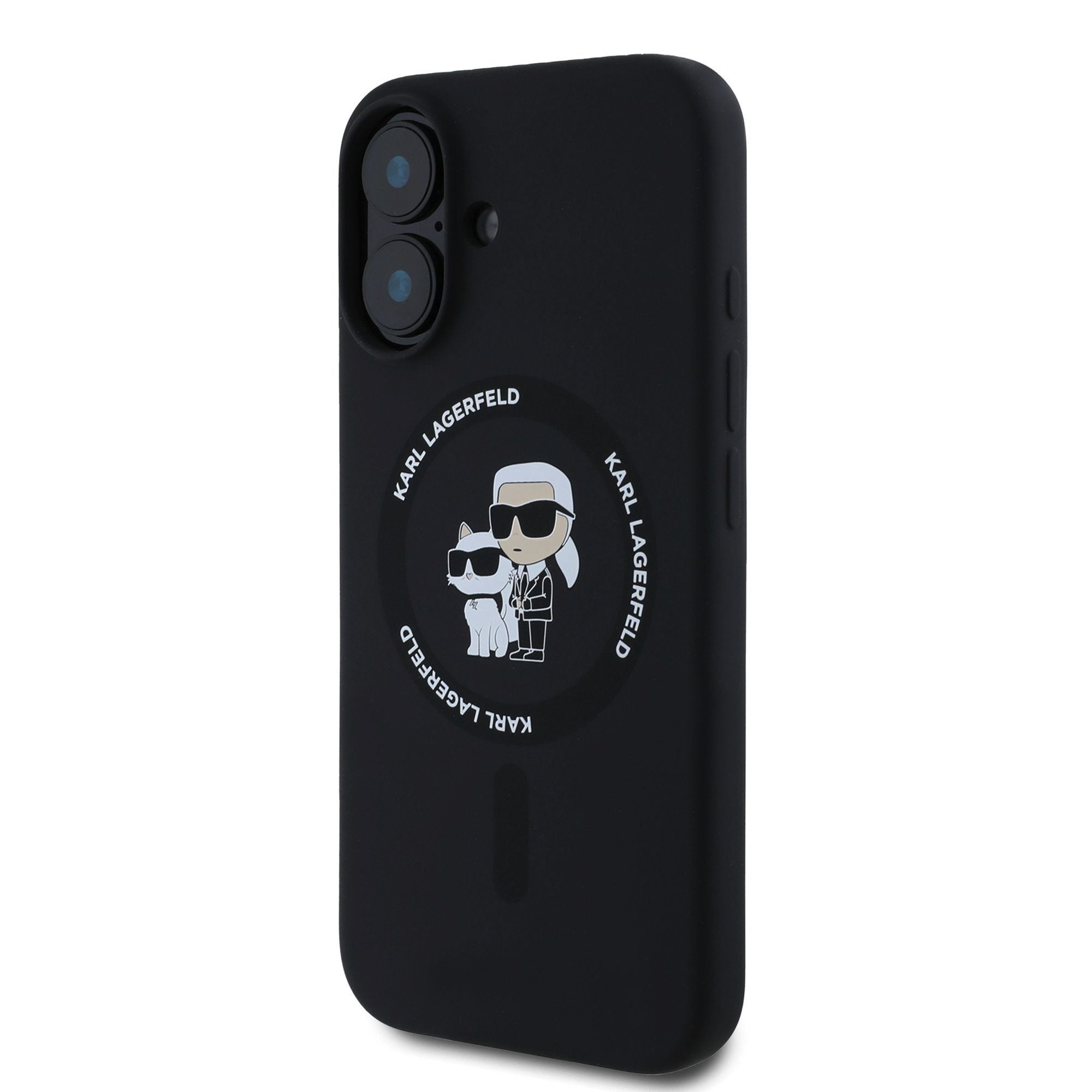 Karl Lagerfeld Liquid Silicone Karl and Choupette MagSafe Black iPhone 16 Plus Tok