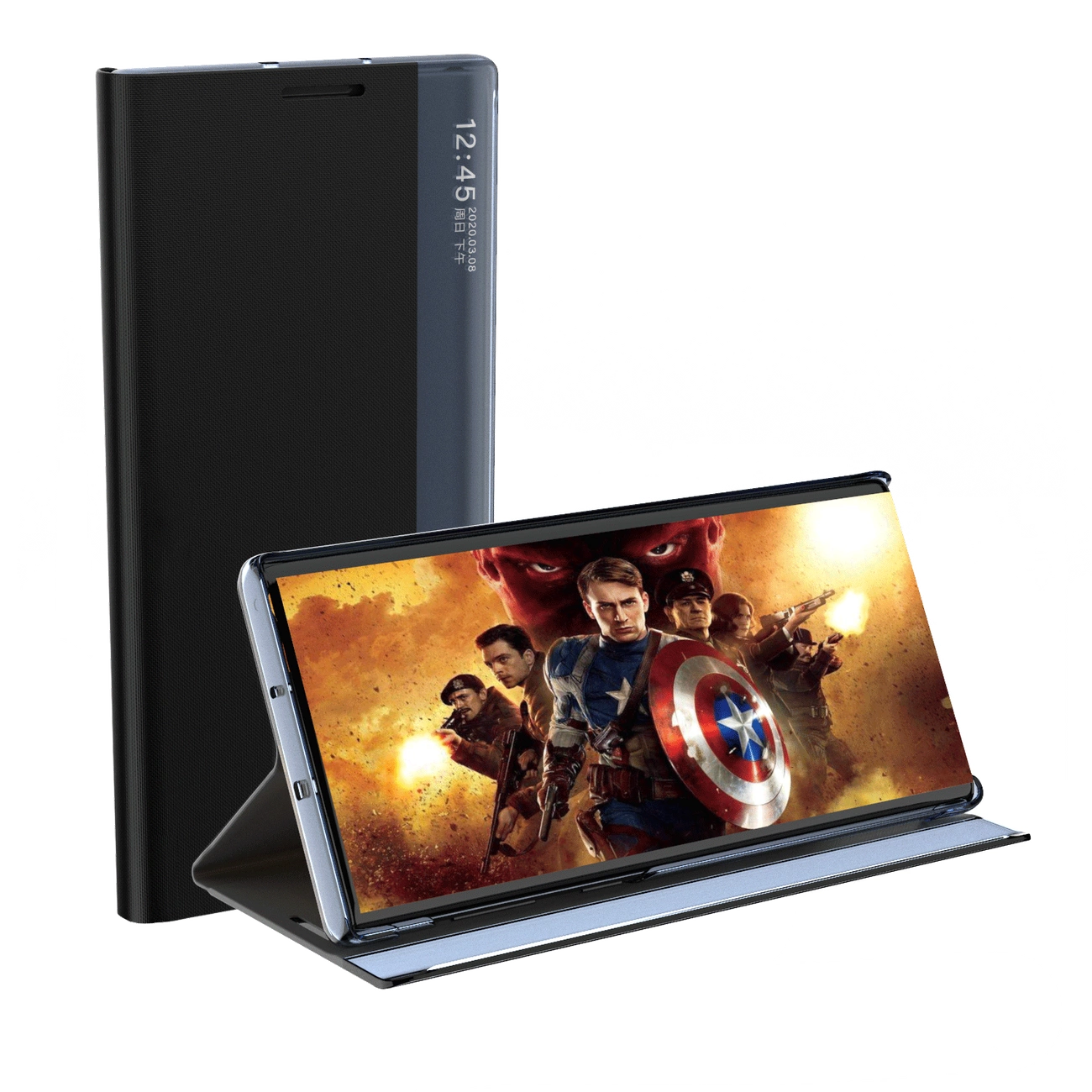 • Állvány funkció. A tok összehajtható, így kényelmes állvánnyá alakítható, amellyel filmeket nézhetsz vagy fényképeket tekinthetsz meg anélkül, hogy a telefont a kezedben kellene tartanod.