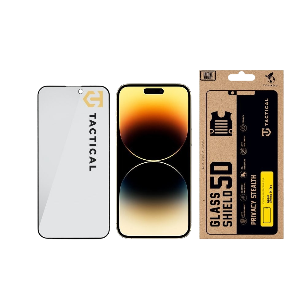 Tactical Glass Shield Privacy Stealth 5D Glass Apple Black iPhone 14 Pro