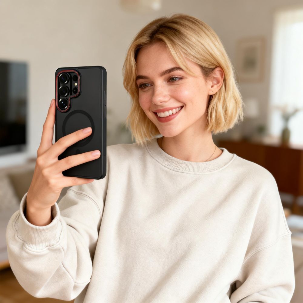 Tech-Protect Magcam MagSafe Matte Black/Red Samsung Galaxy S26 Ultra Tok